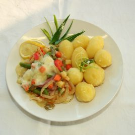 Omeleta se sýrem, brambor, rajče (1,3,7)