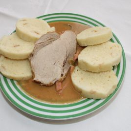 Hovězí guláš, houskový knedlík, těstoviny (1,3,7,9)