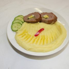 Sekaný máslový řízek, bramborová kaše, mrkvový salát s jablky (1,3,7)