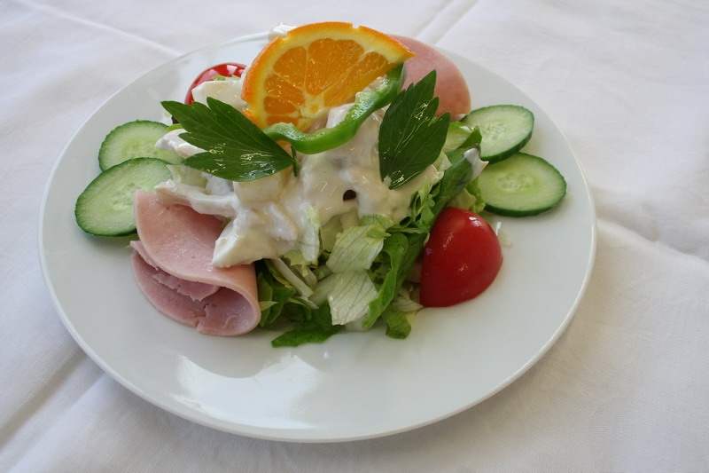 Kuře alá bažant, rýže, zeleninový salát (1,7,9)